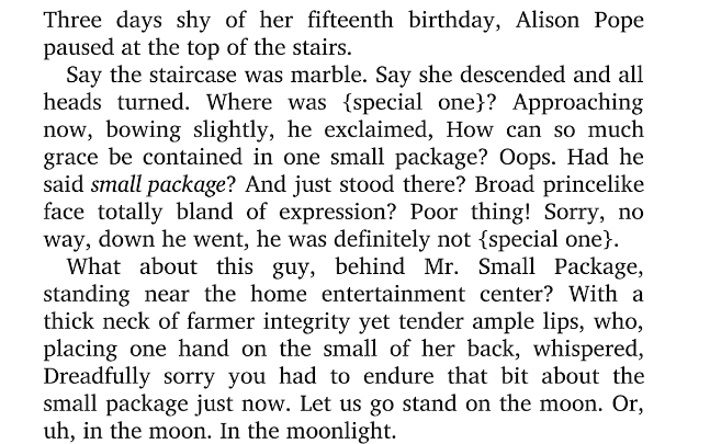 While there’s nothing wrong with this type of storytelling, consider amping up your sentences to make a more fun voice, if you will. Below I’ve included a sample of the beginning paragraph to George Saunder’s Victory Lap:
